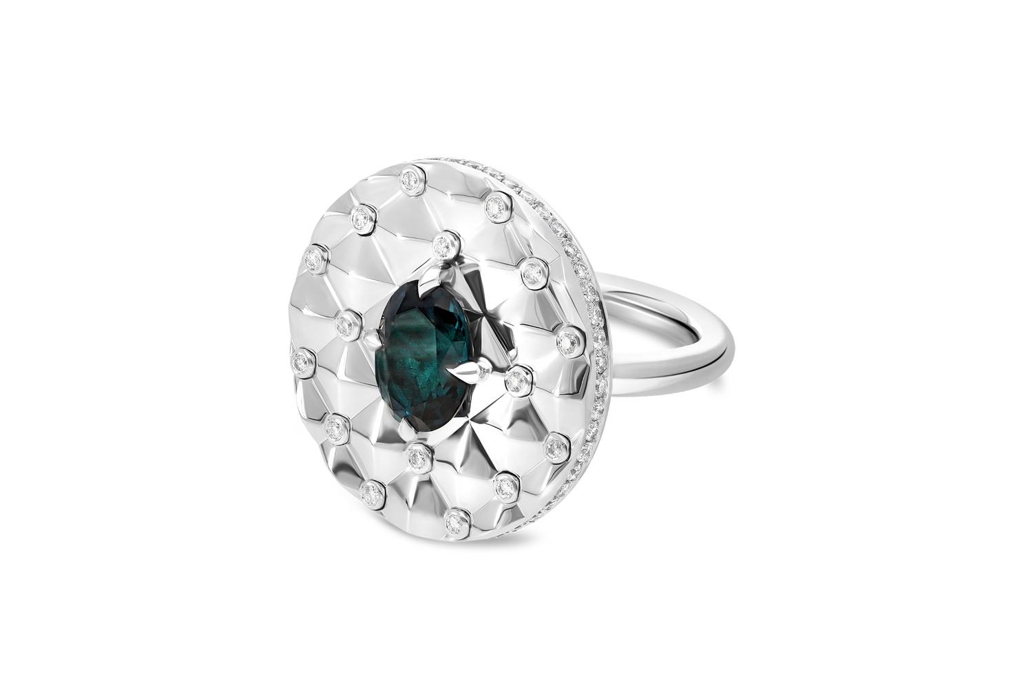 La force de ce vert est sublimée par l'éclat des diamants et la présence de la laque