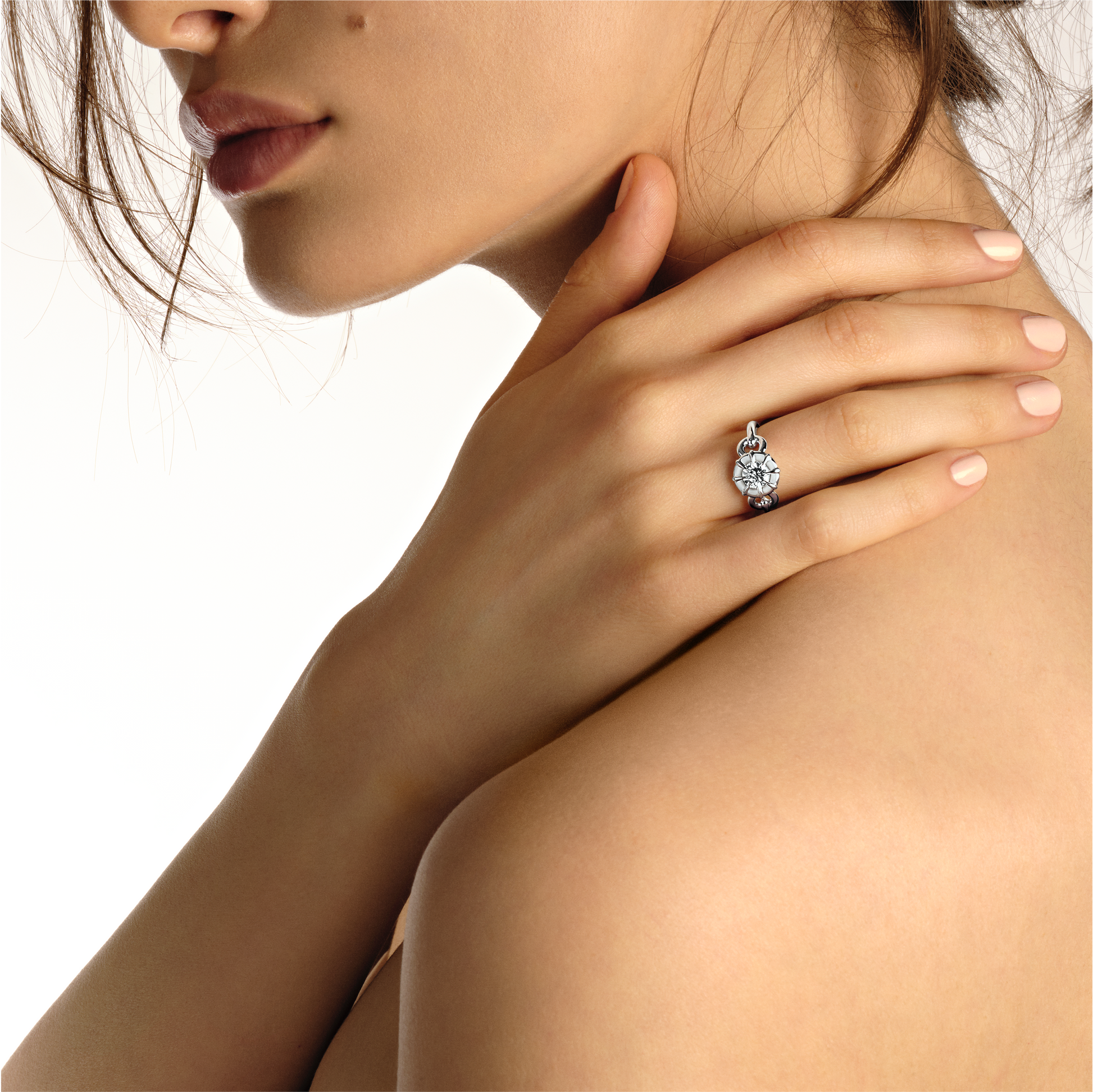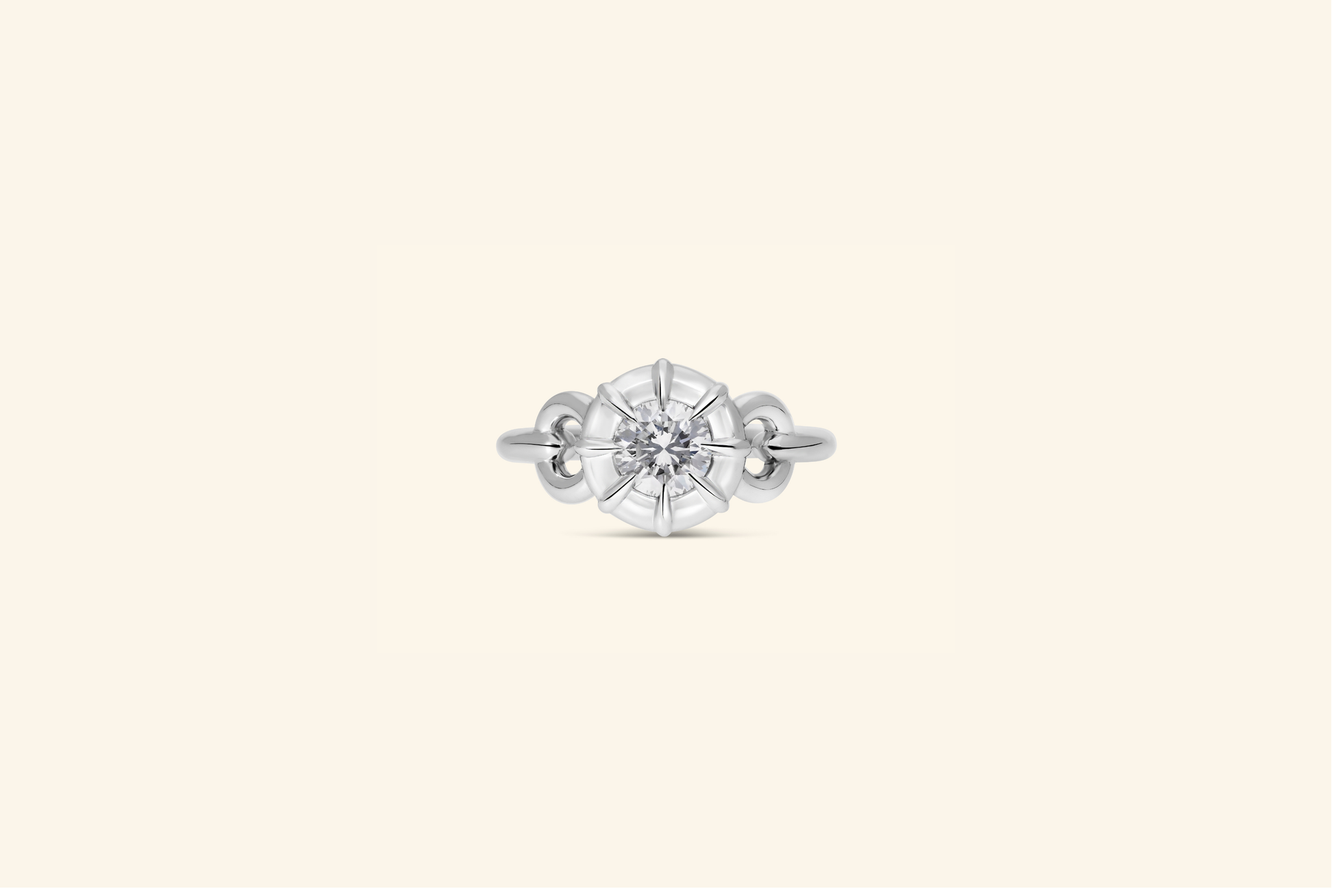 Bague Flash, or blanc 18k, sertie d'un diamant de ~0,70 carat.