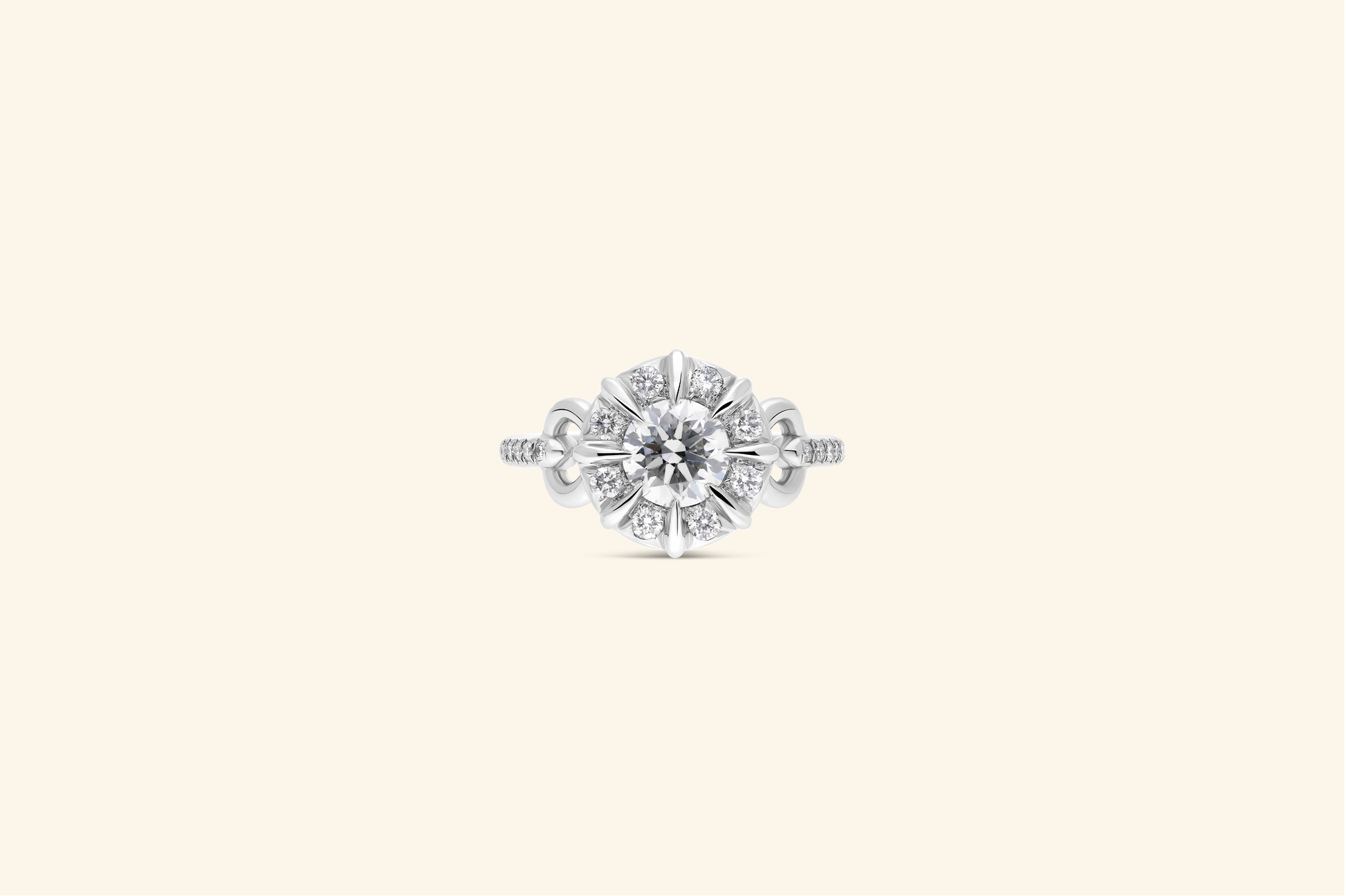 Bague Flash, or blanc 18k, sertie d'un diamant de ~1,0 carat et de 26 diamants pour ~0,33 carat.
