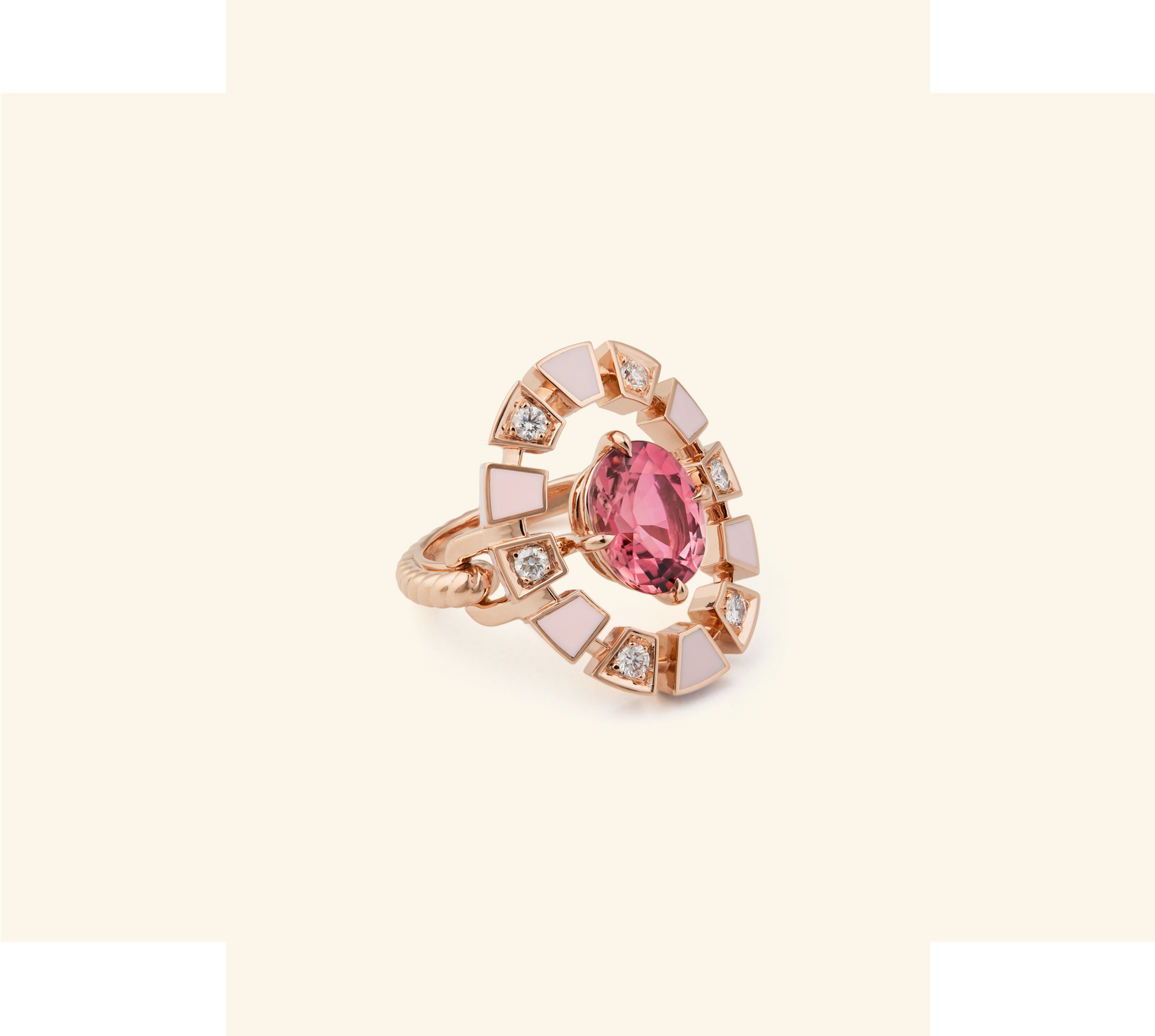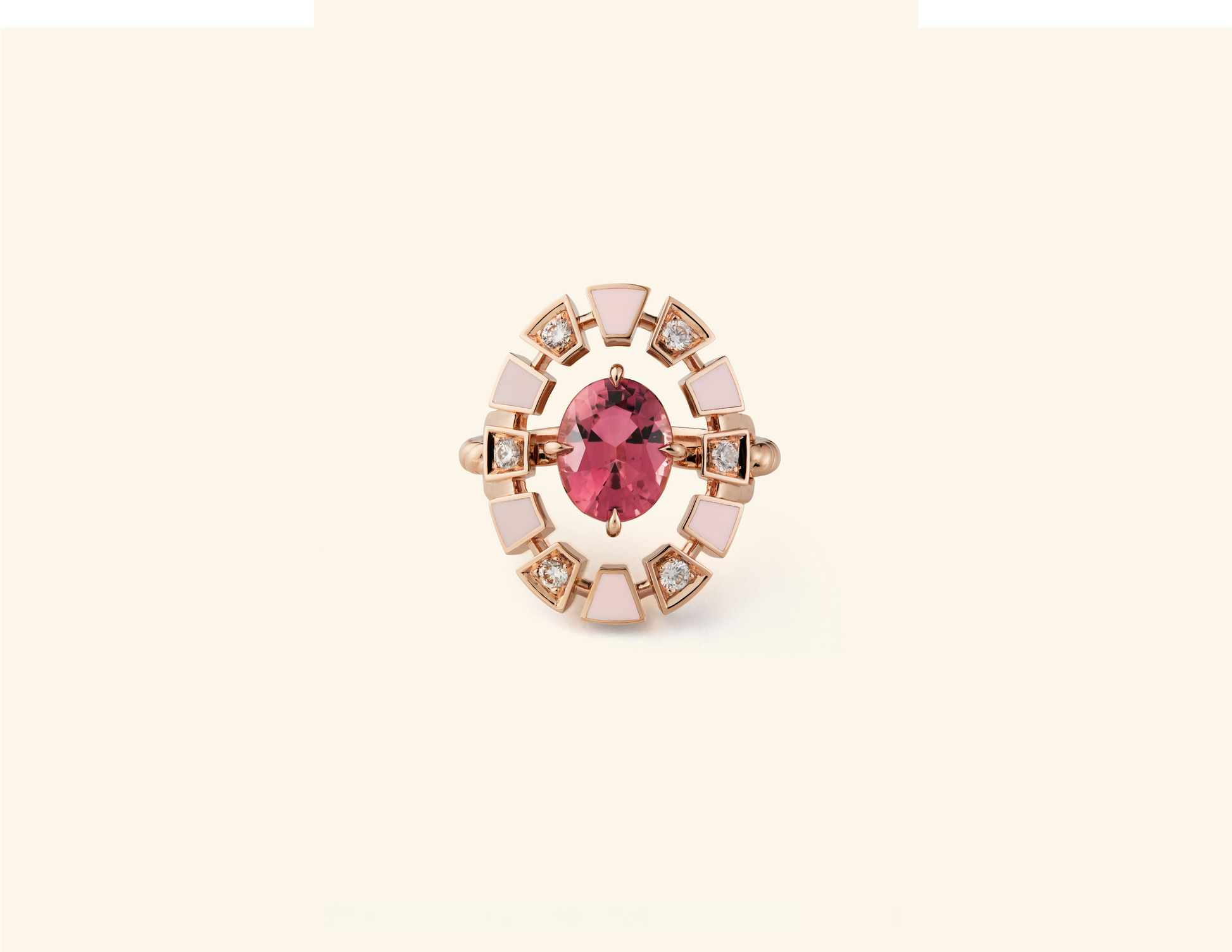 Bague Frame, or rose, céramique rose, diamants, tourmaline rose