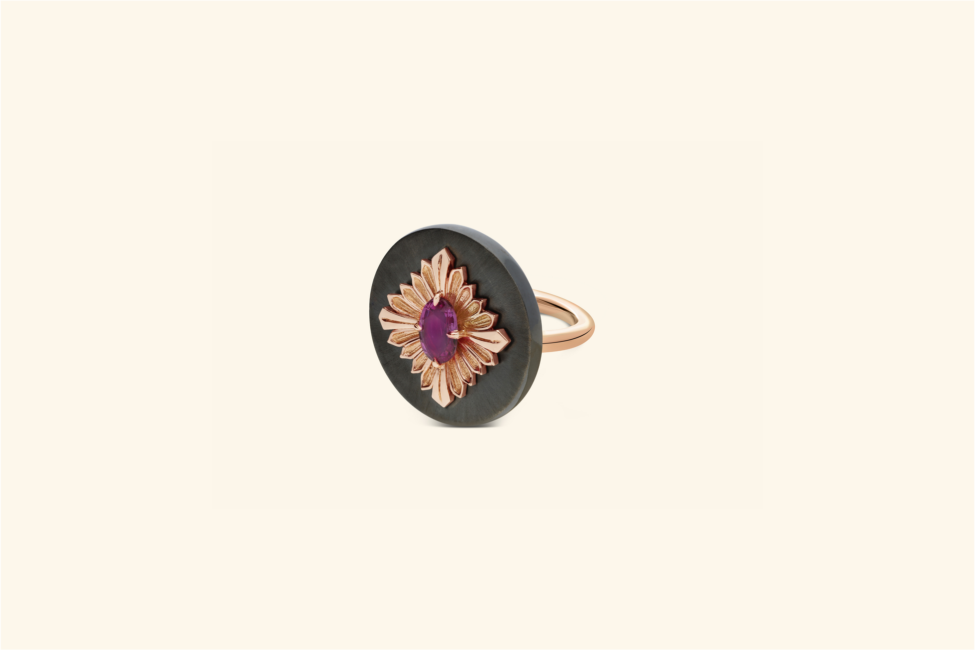 Bague Tag, argent noirci, or rose, saphir rose
