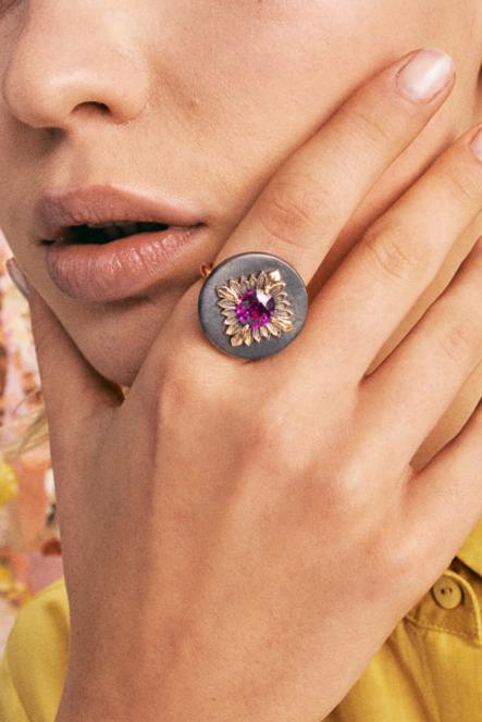 Bague Tag, argent noirci 925 et argent 925, sertie d'une aigue-marine de ~0,54 carat.