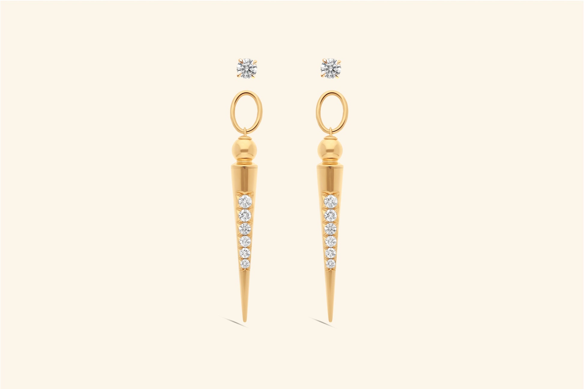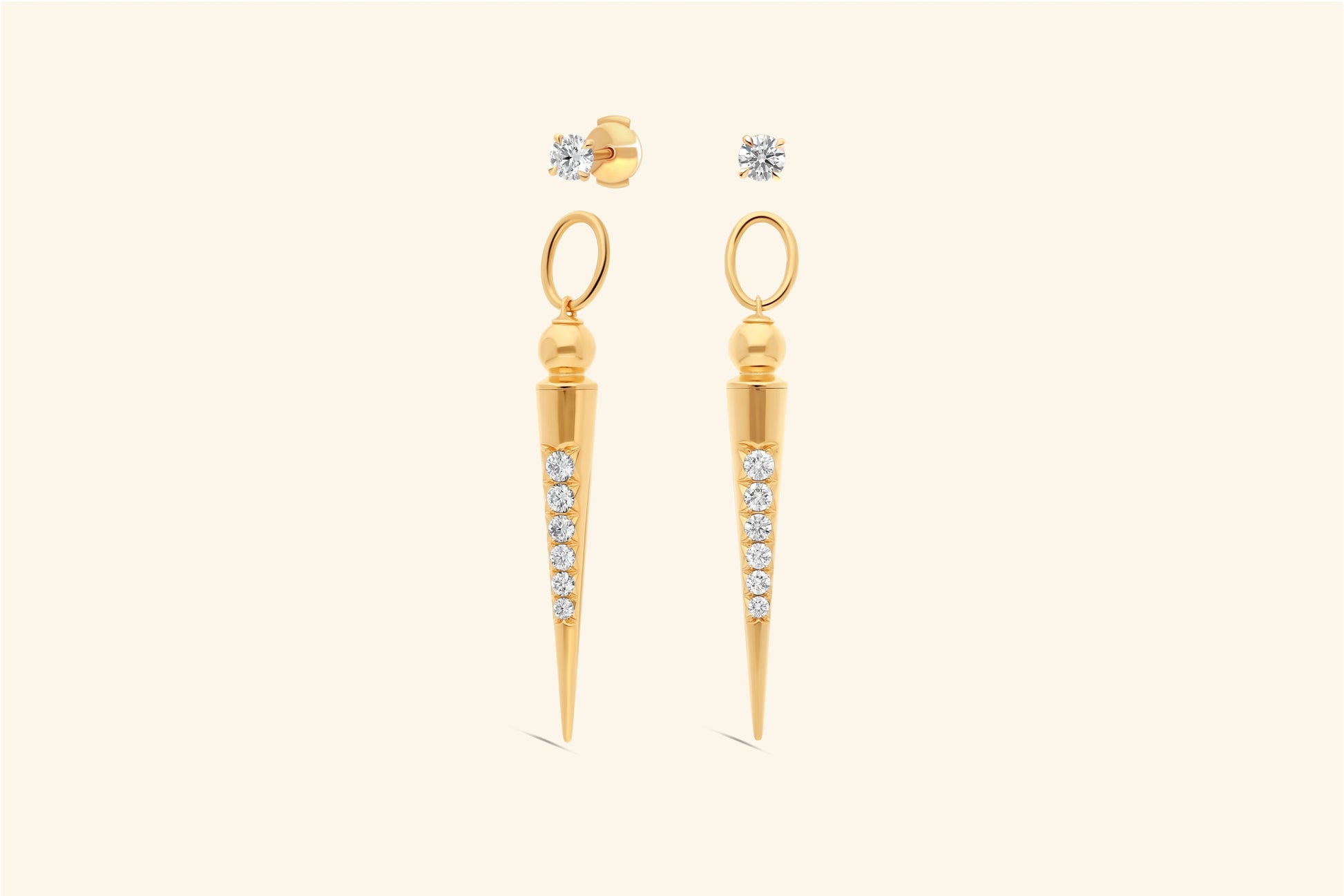Paire de boucles d'oreilles Pampille, or jaune 18k, serties chacune d'un diamant de ~0,50 carat et de 5 diamants pour ~0,19 carat.