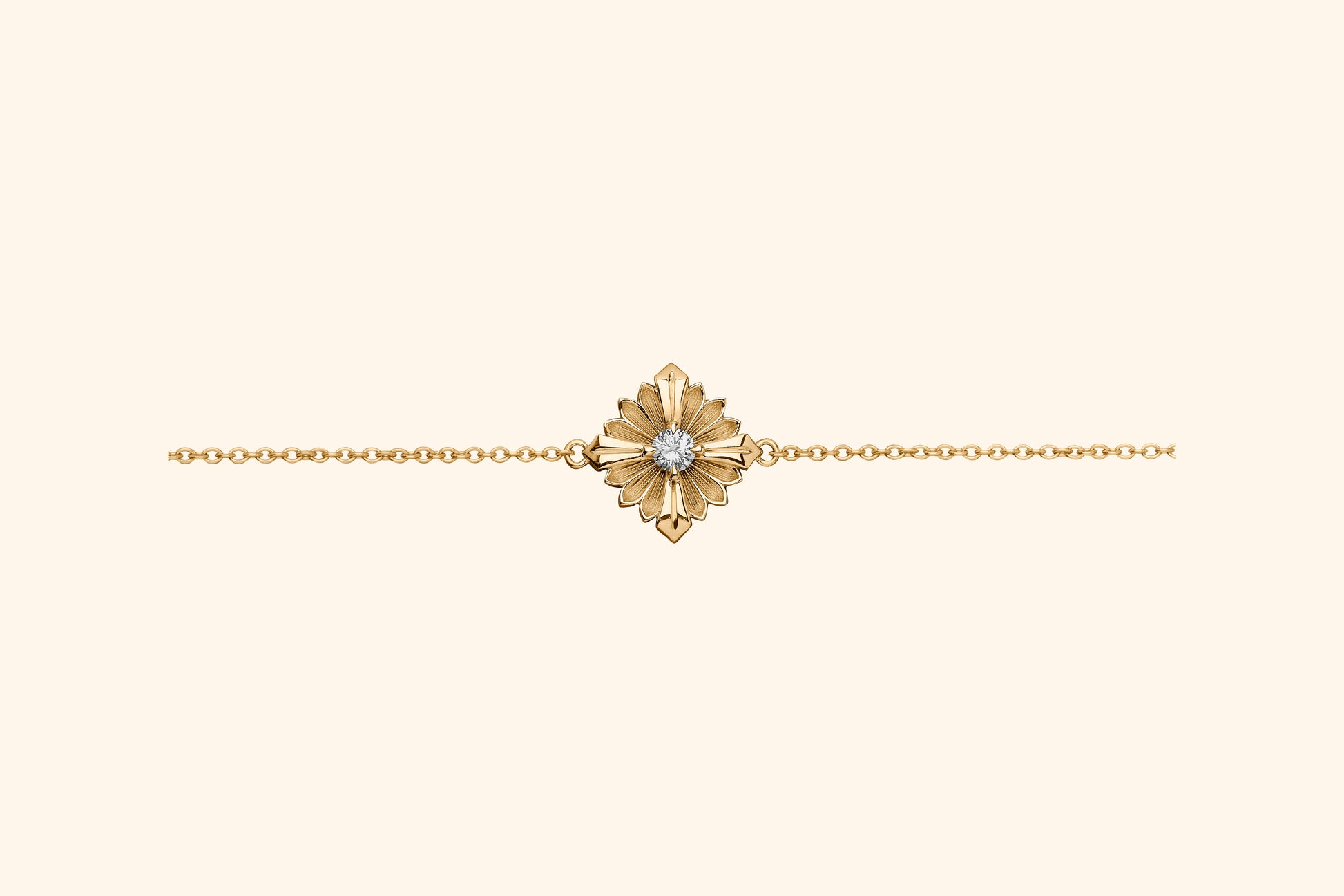 Bracelet Stamp, or jaune 18k, serti d'un diamant de ~0,15 carat.