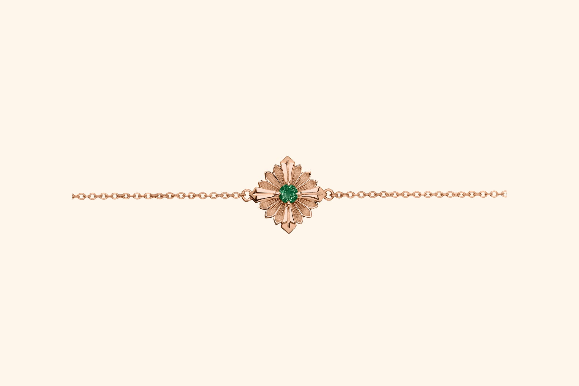Bracelet Stamp, or rose 18k, serti d'une tourmaline verte de ~0,27 carat. Référence C142
