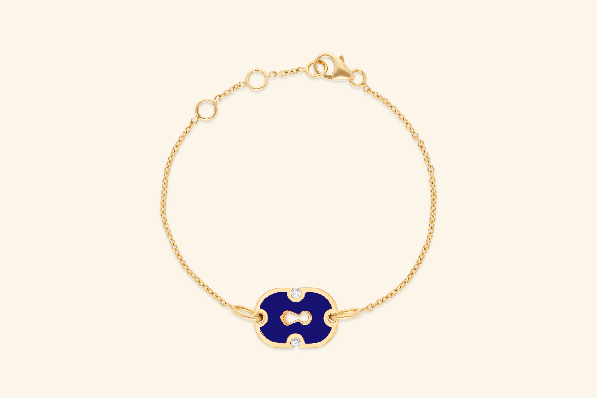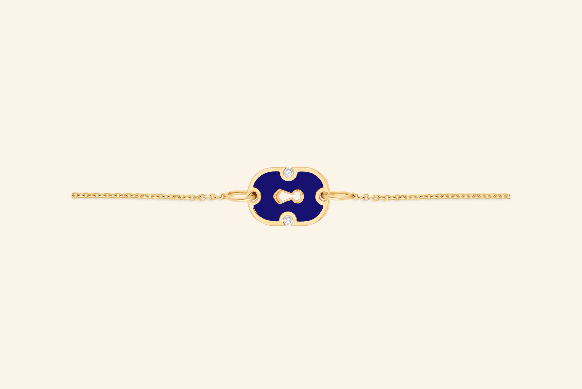 Bracelet Unlock petit modèle, or jaune, céramique bleue marine, diamants