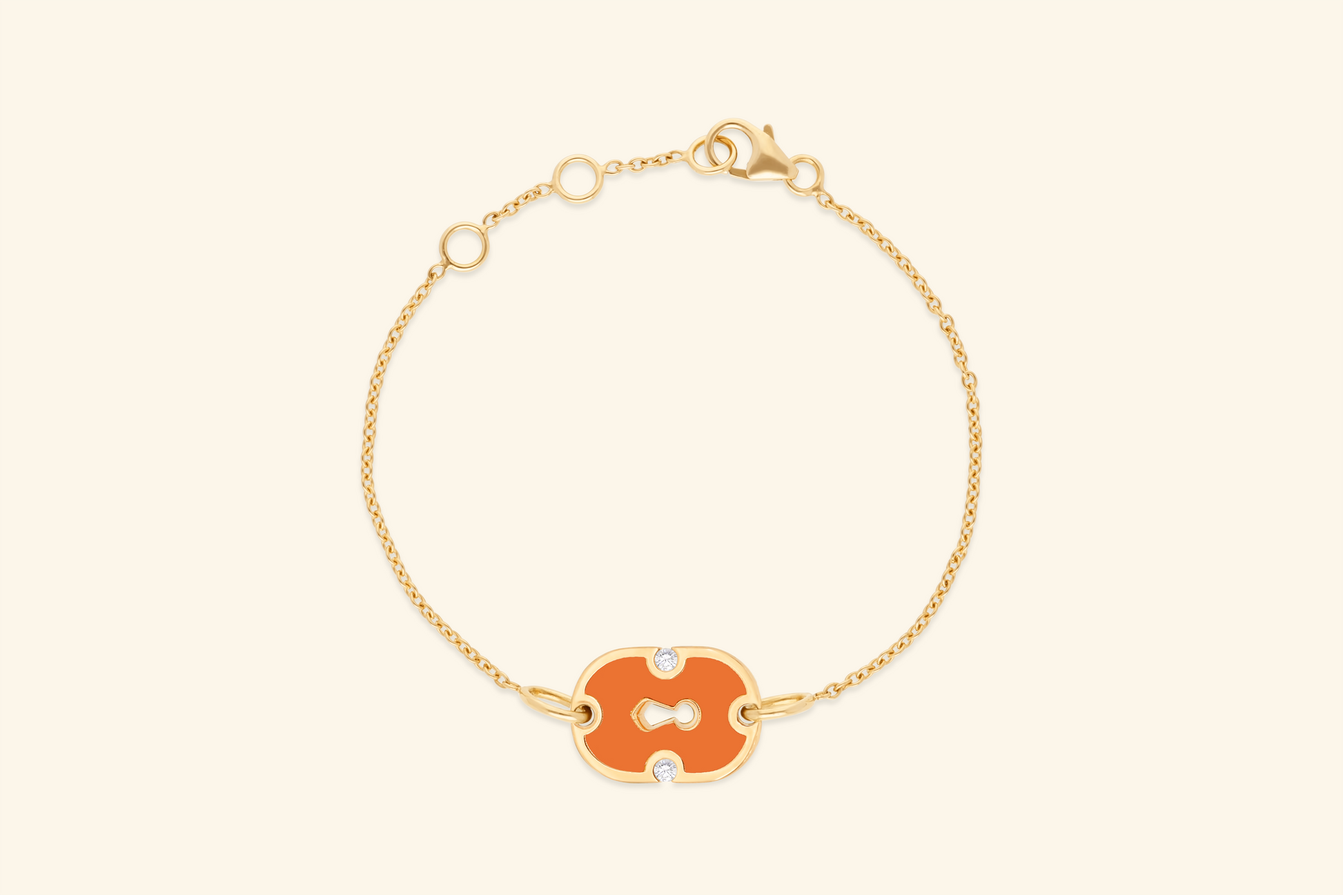 Bracelet Unlock petit modèle, or jaune, céramique orange, diamants
