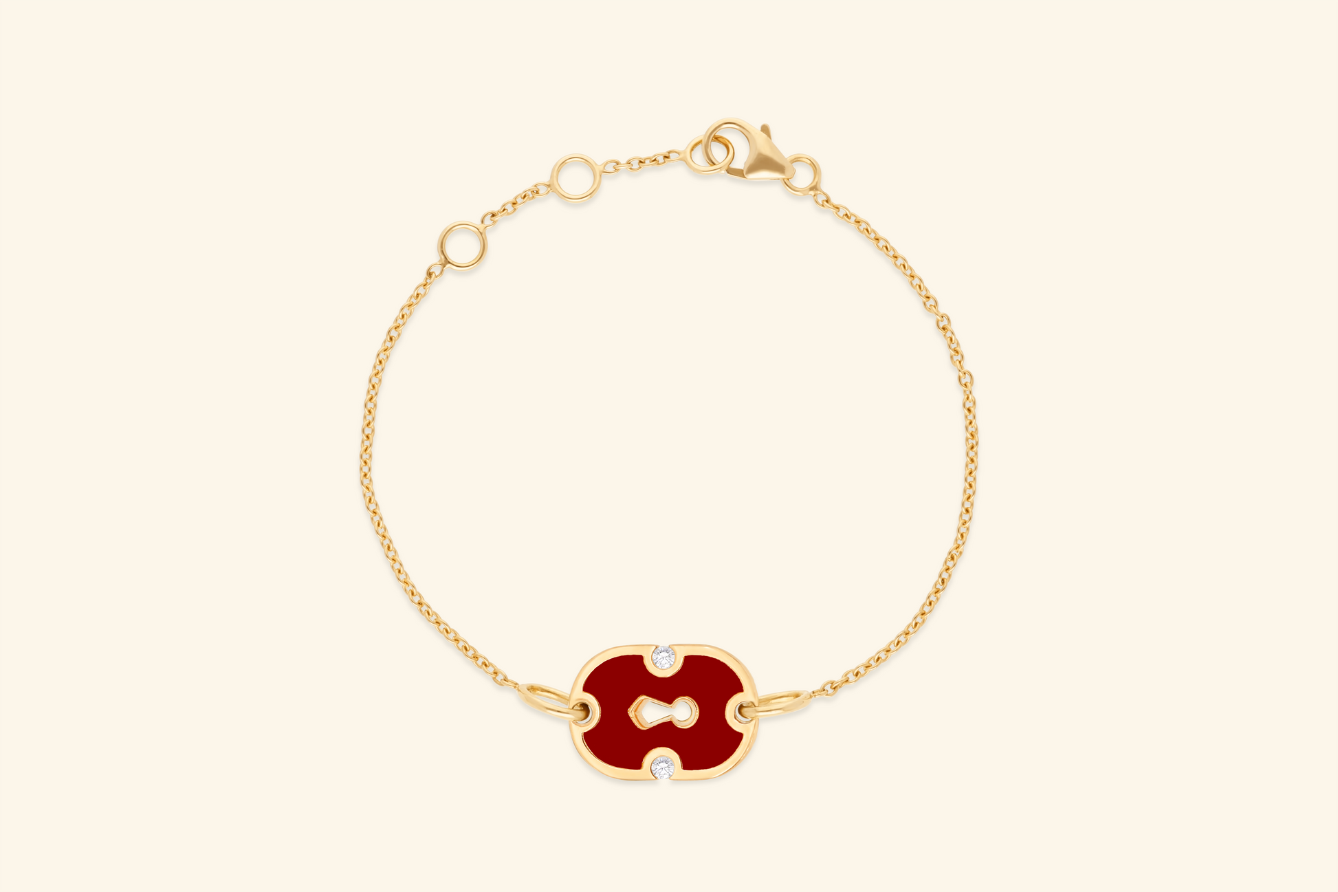 Bracelet Unlock petit modèle, or jaune, céramique rouge, diamants