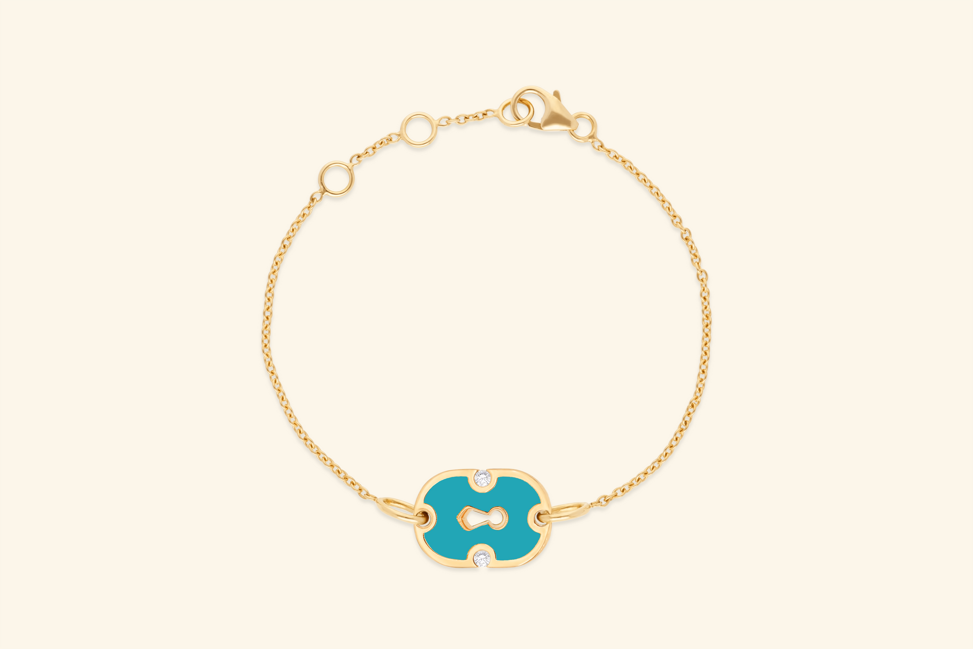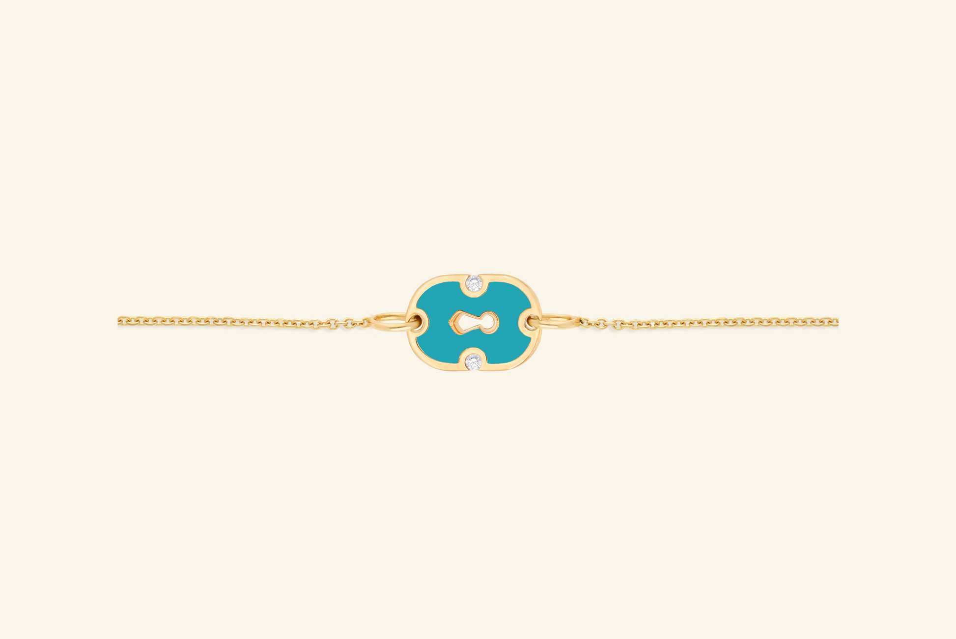 Bracelet Unlock petit modèle, or jaune, céramique turquoise, diamants