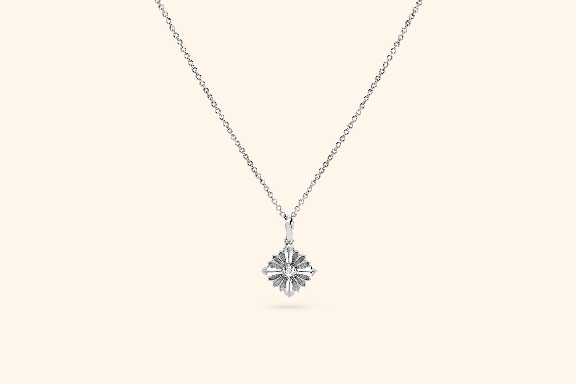 Collier Stamp, or blanc 18k, serti d'un diamant de ~0,15 carat.