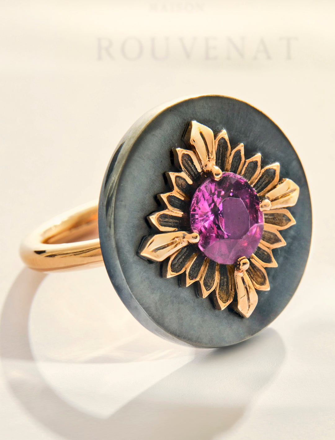 Collier Tag, argent noirci et argent 925, serti d'une tourmaline rose de ~0,5 carat.