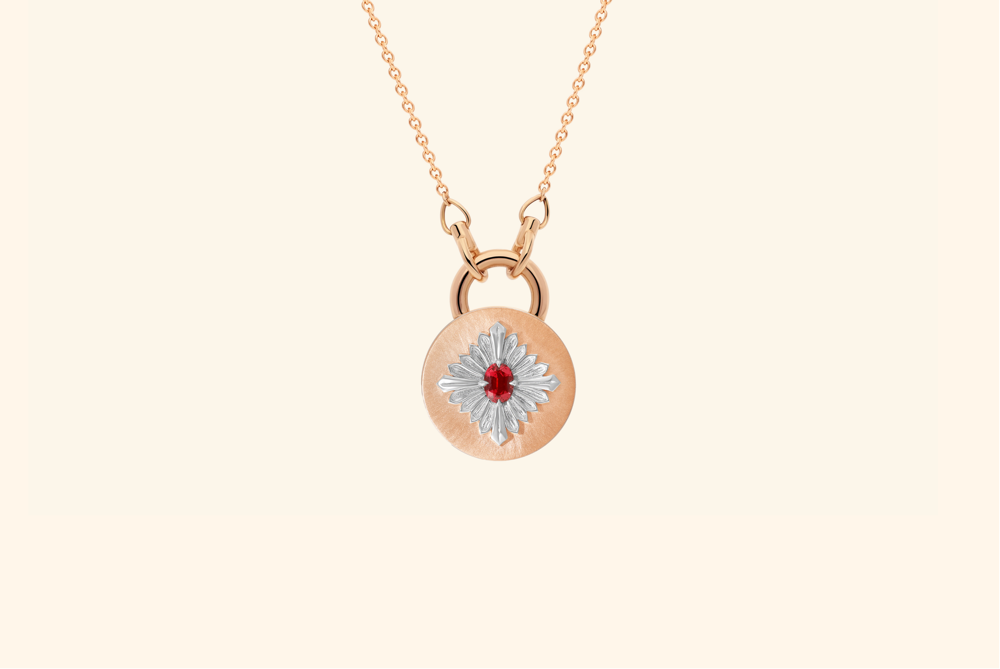 Collier Tag, or rose 18k, argent 925, serti d'un spinelle rouge de 0,20-0,50 carat.