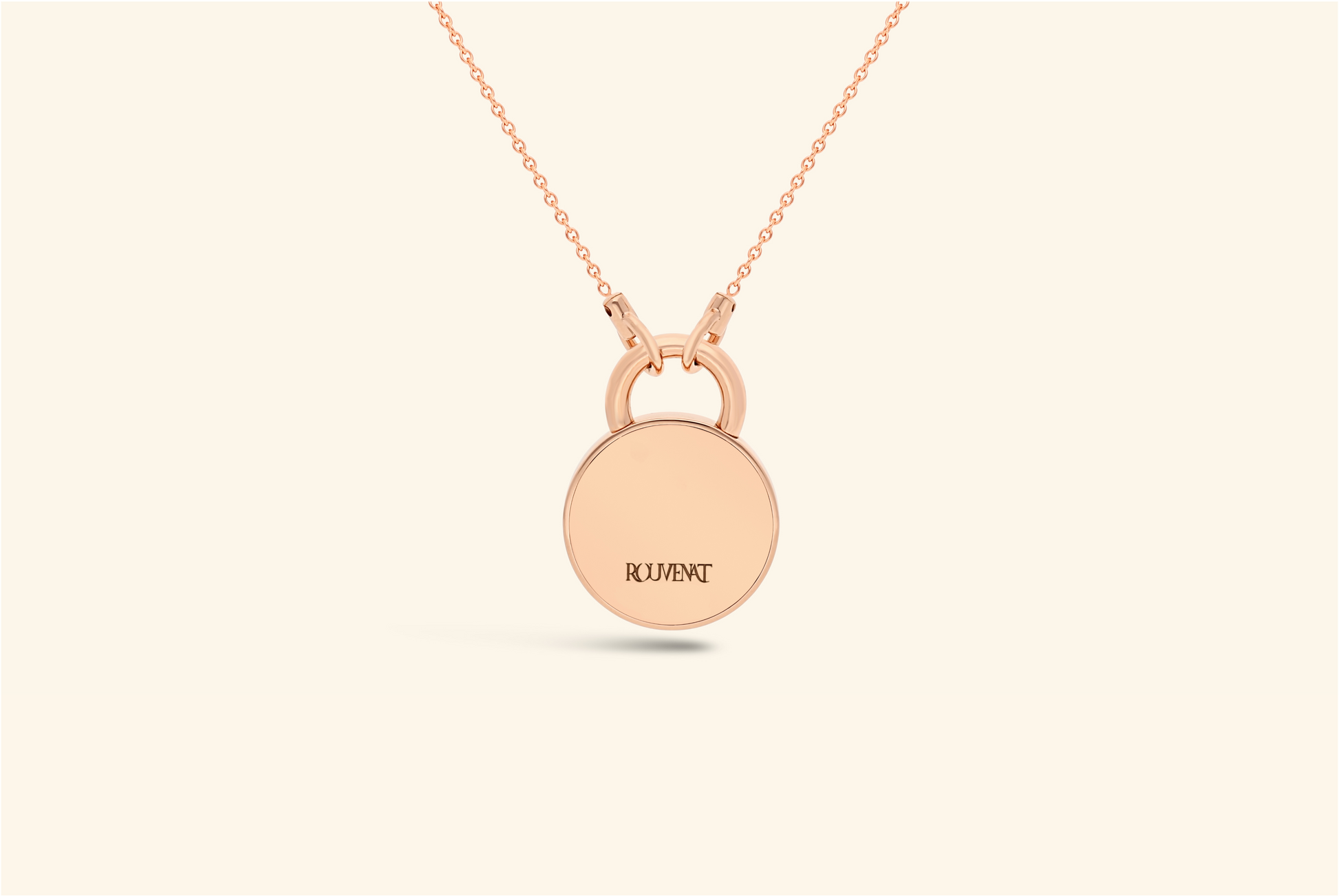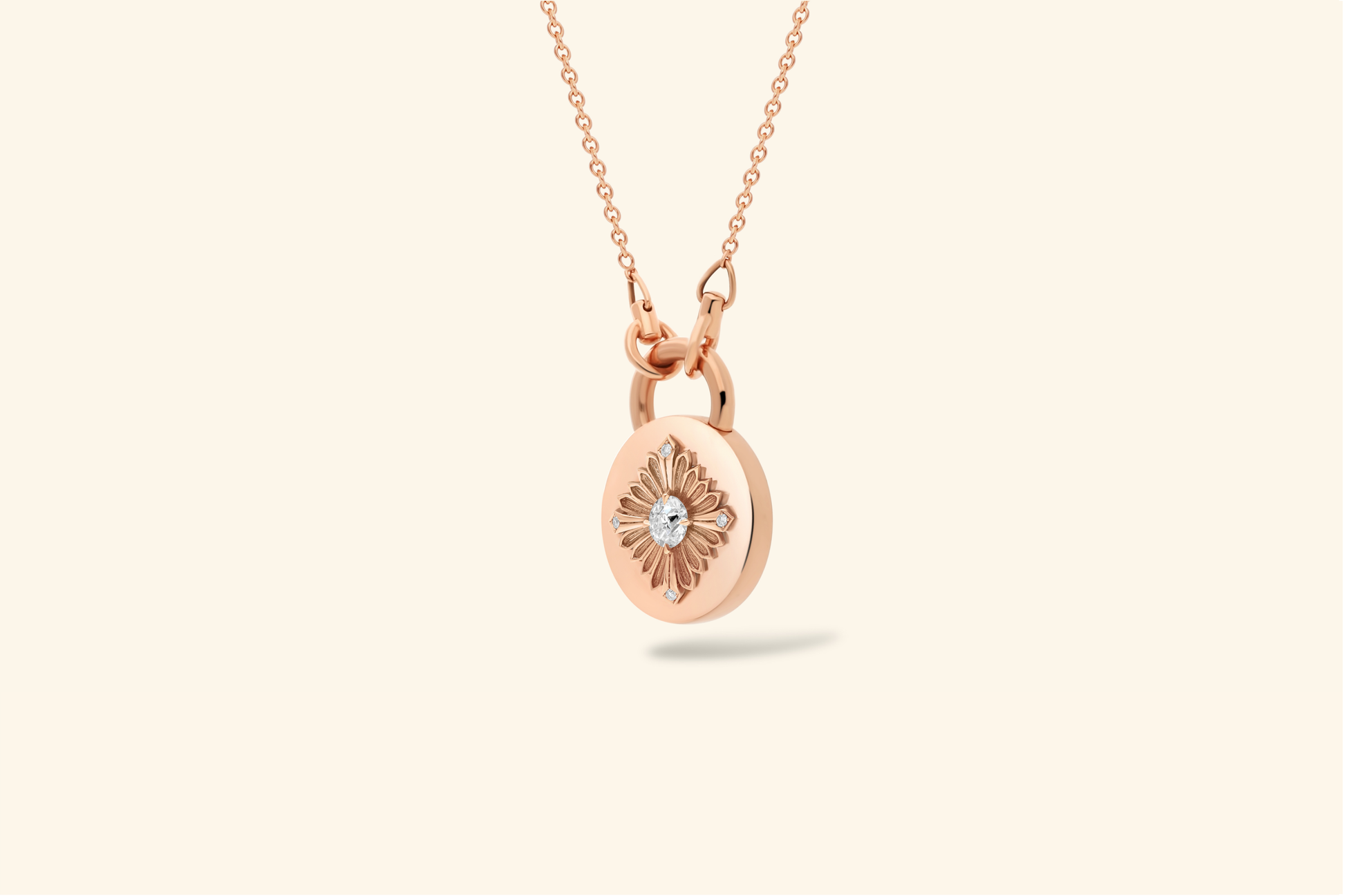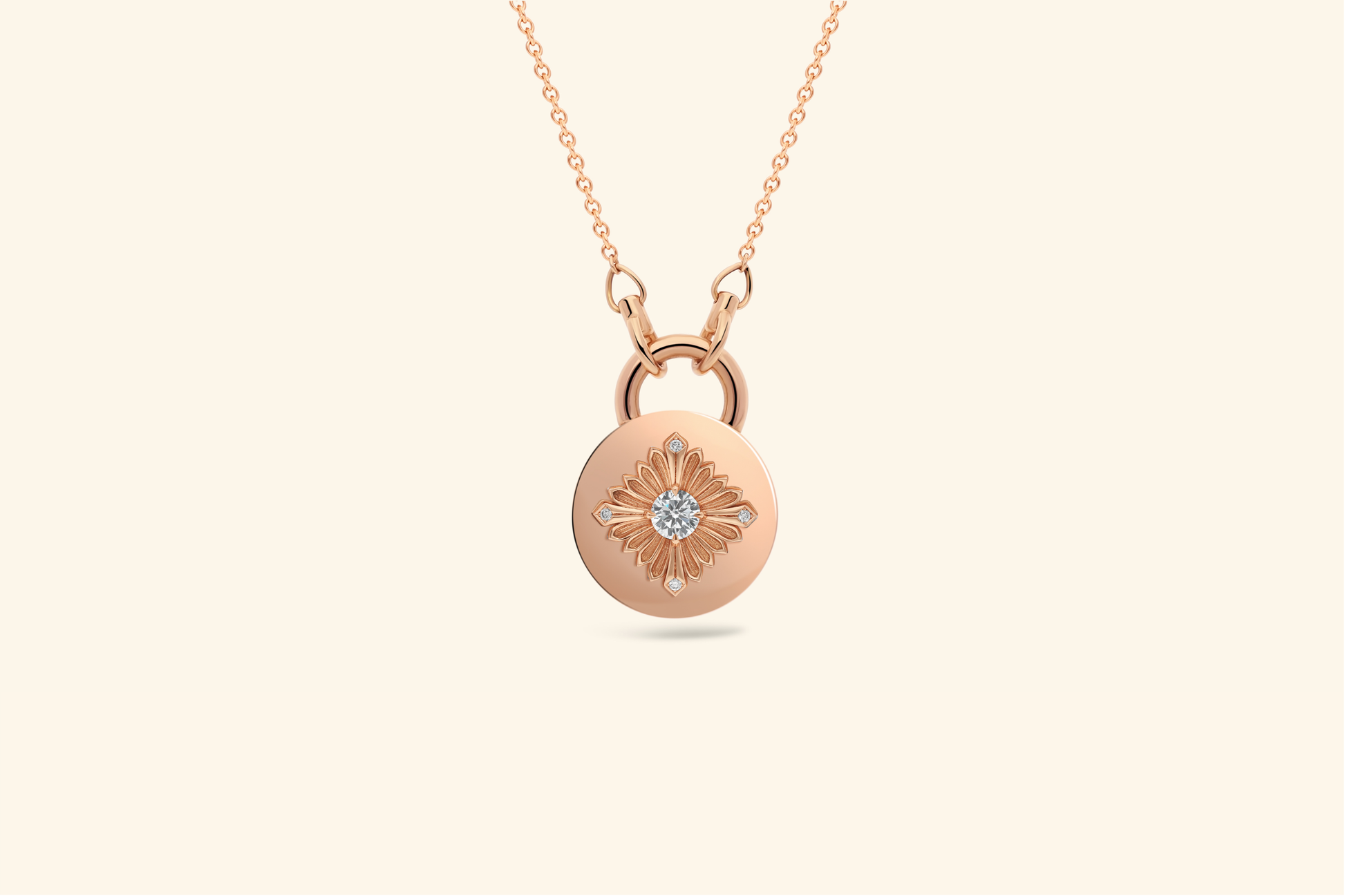 Collier Tag, or rose 18k, serti d'un diamant de centre de ~0,30 carat et de 4 diamants pour ~0,04 carat.