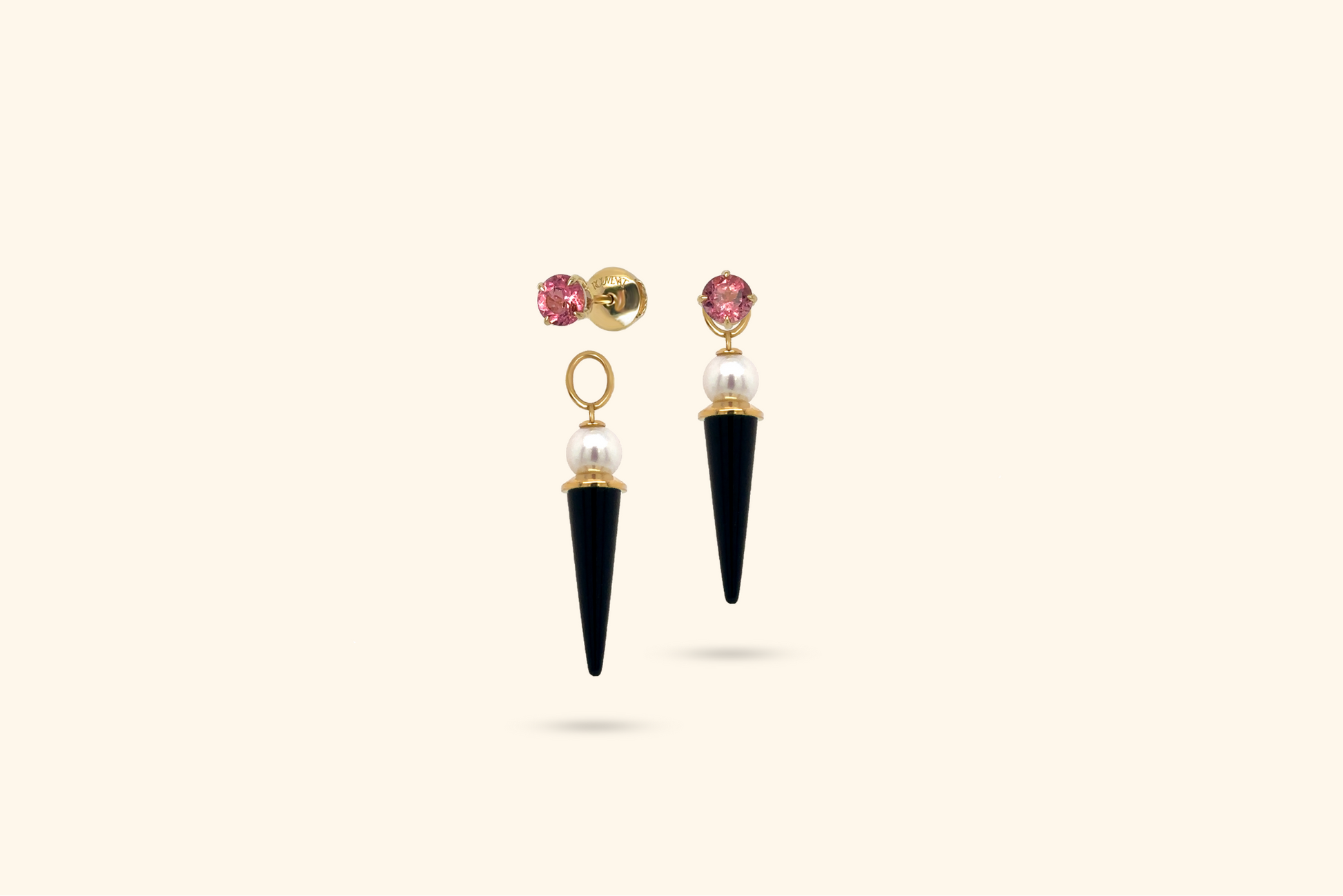 Pendentif Mini Pampille, or jaune, perle, onyx