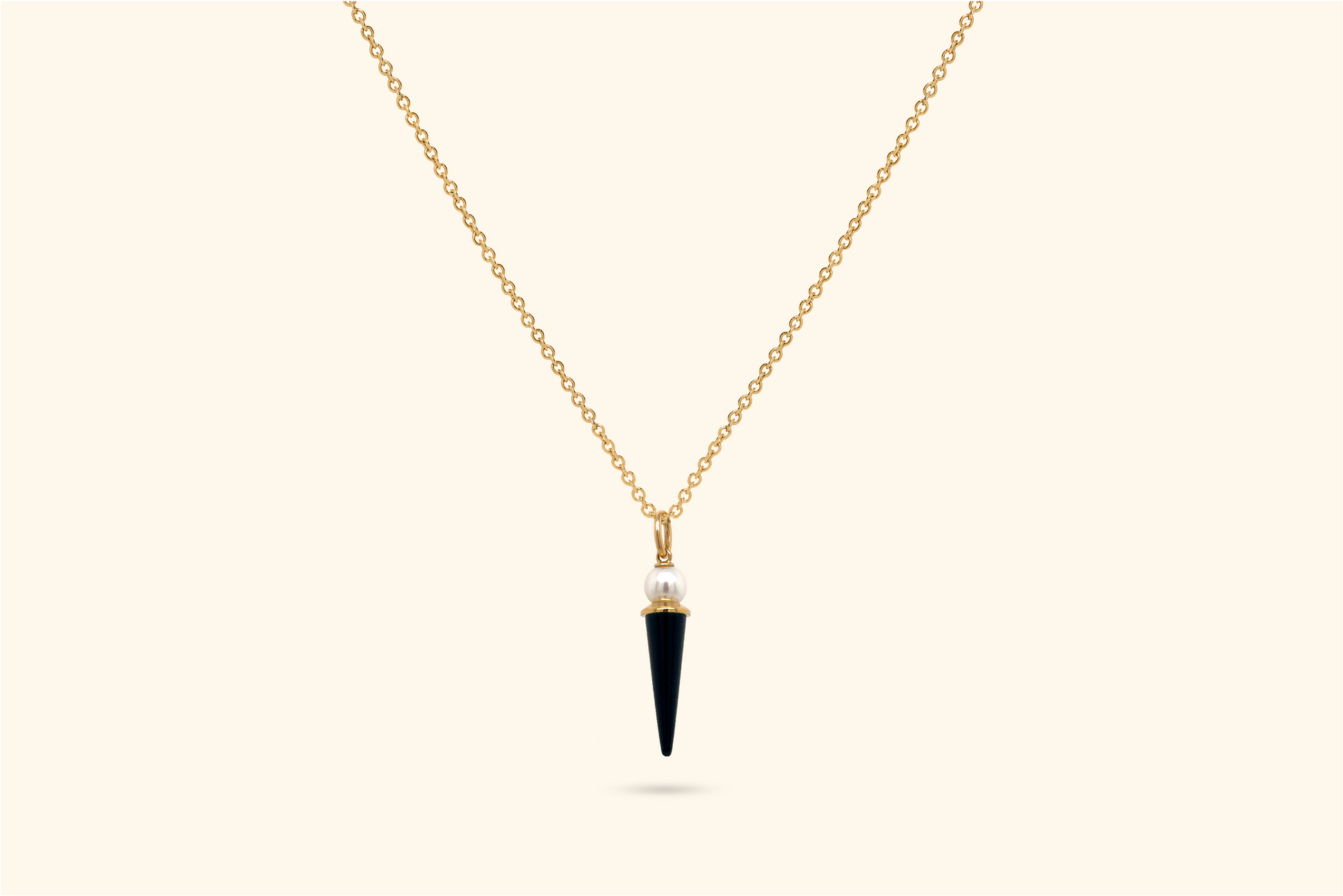 Pendentif Mini Pampille, or jaune 18k, onyx surmonté d'une perle.