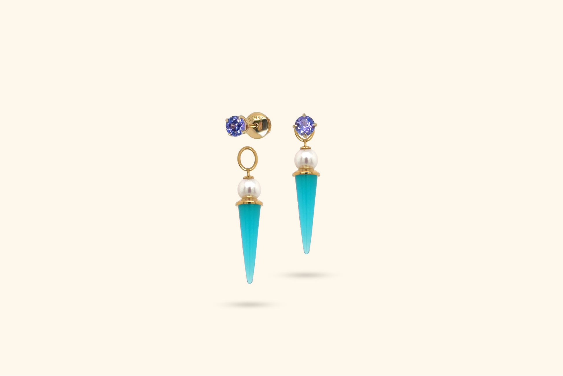 Pendentif Mini Pampille, or jaune, perle, agathe bleue