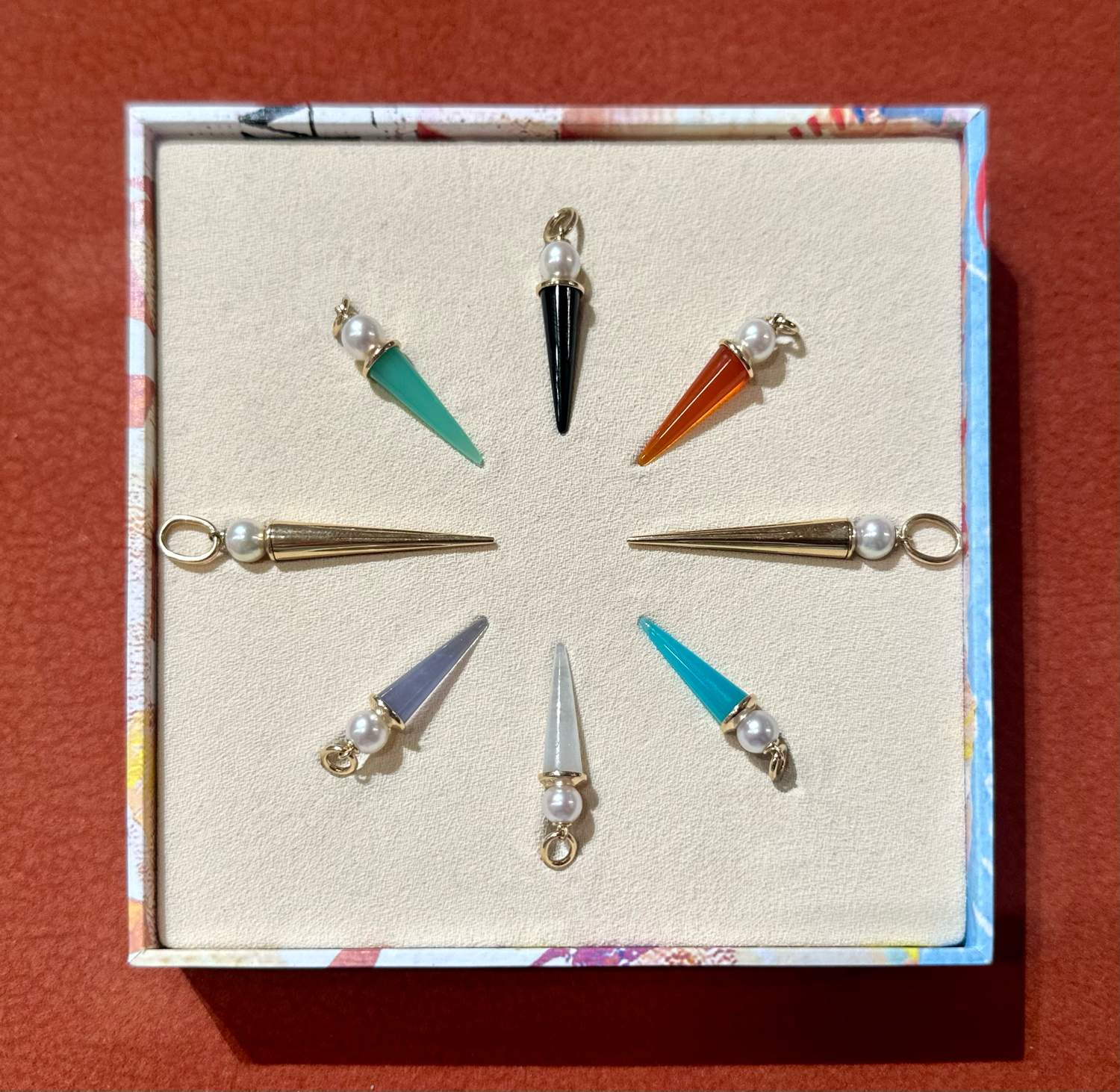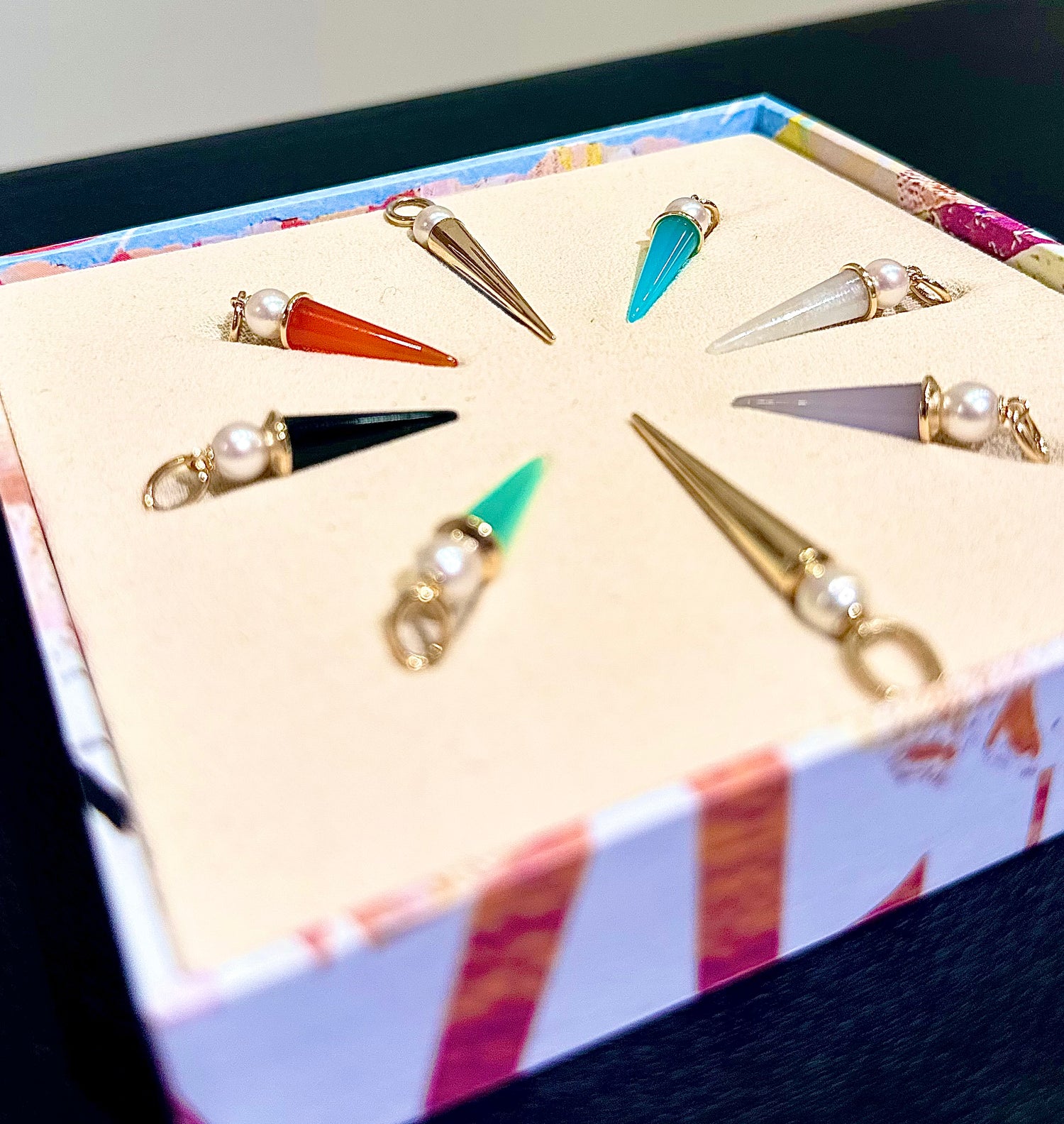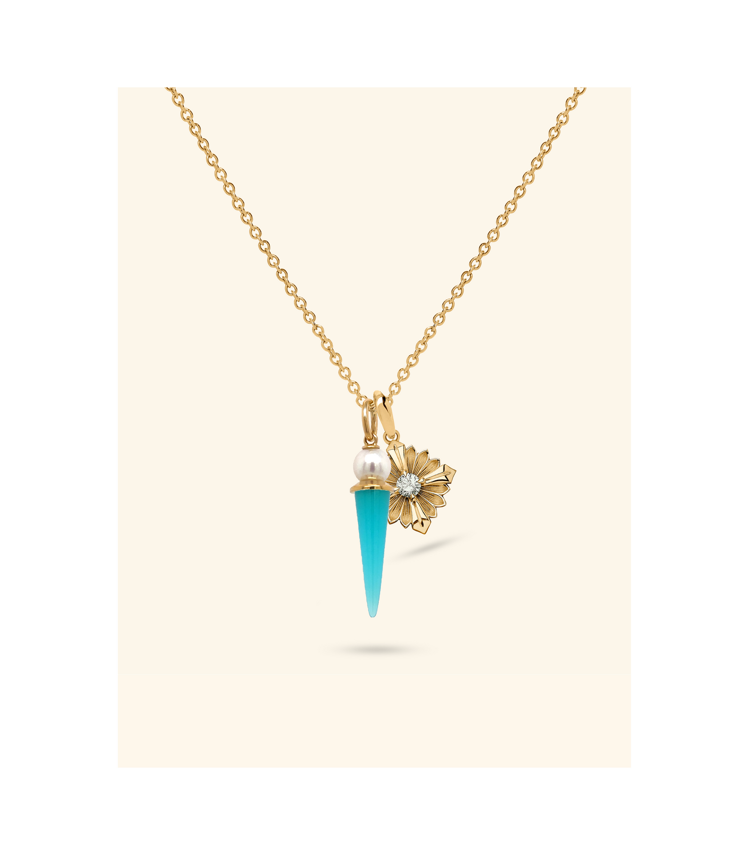 Pendentif Mini Pampille, or jaune 18k, calcédoine surmontée d'une perle.