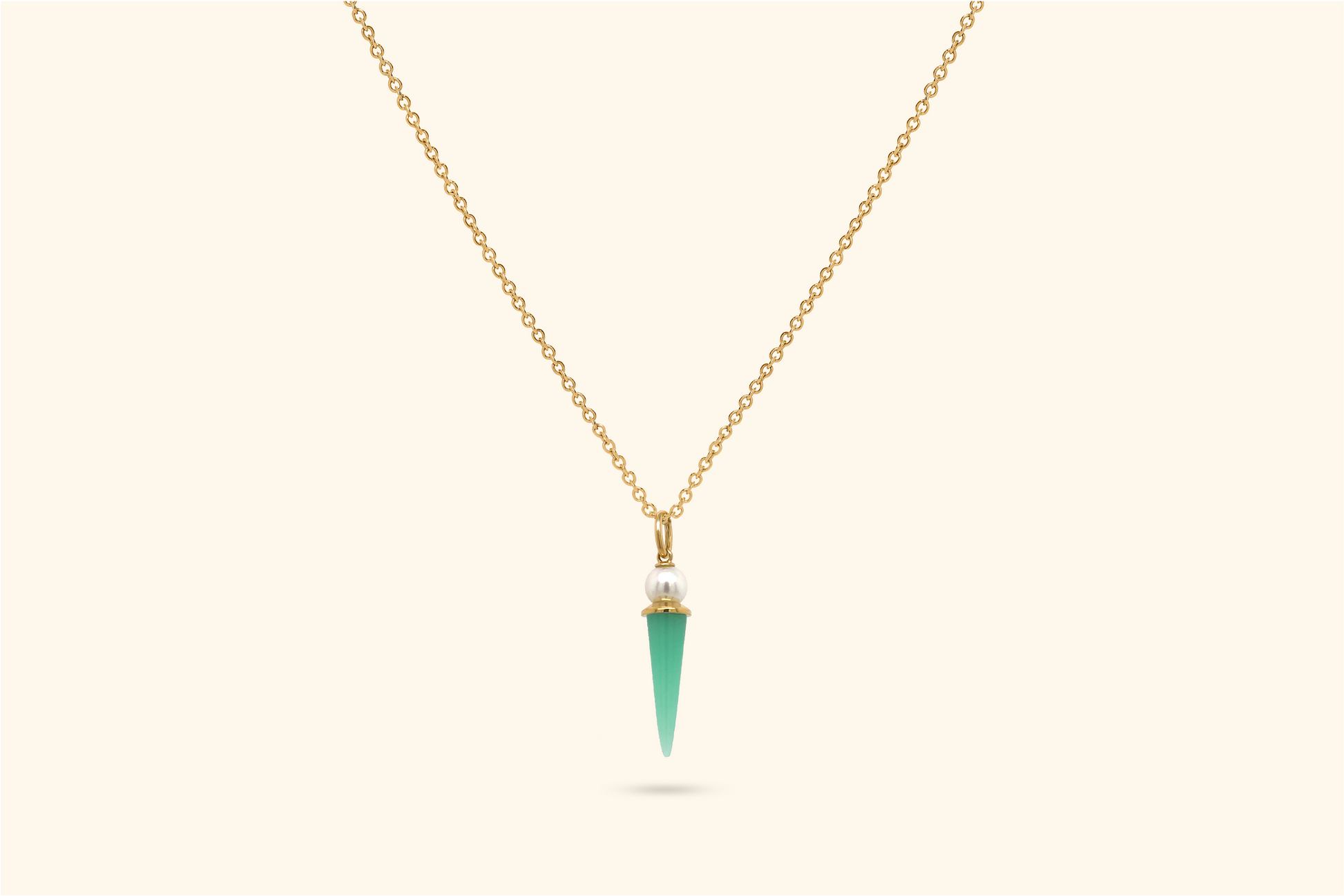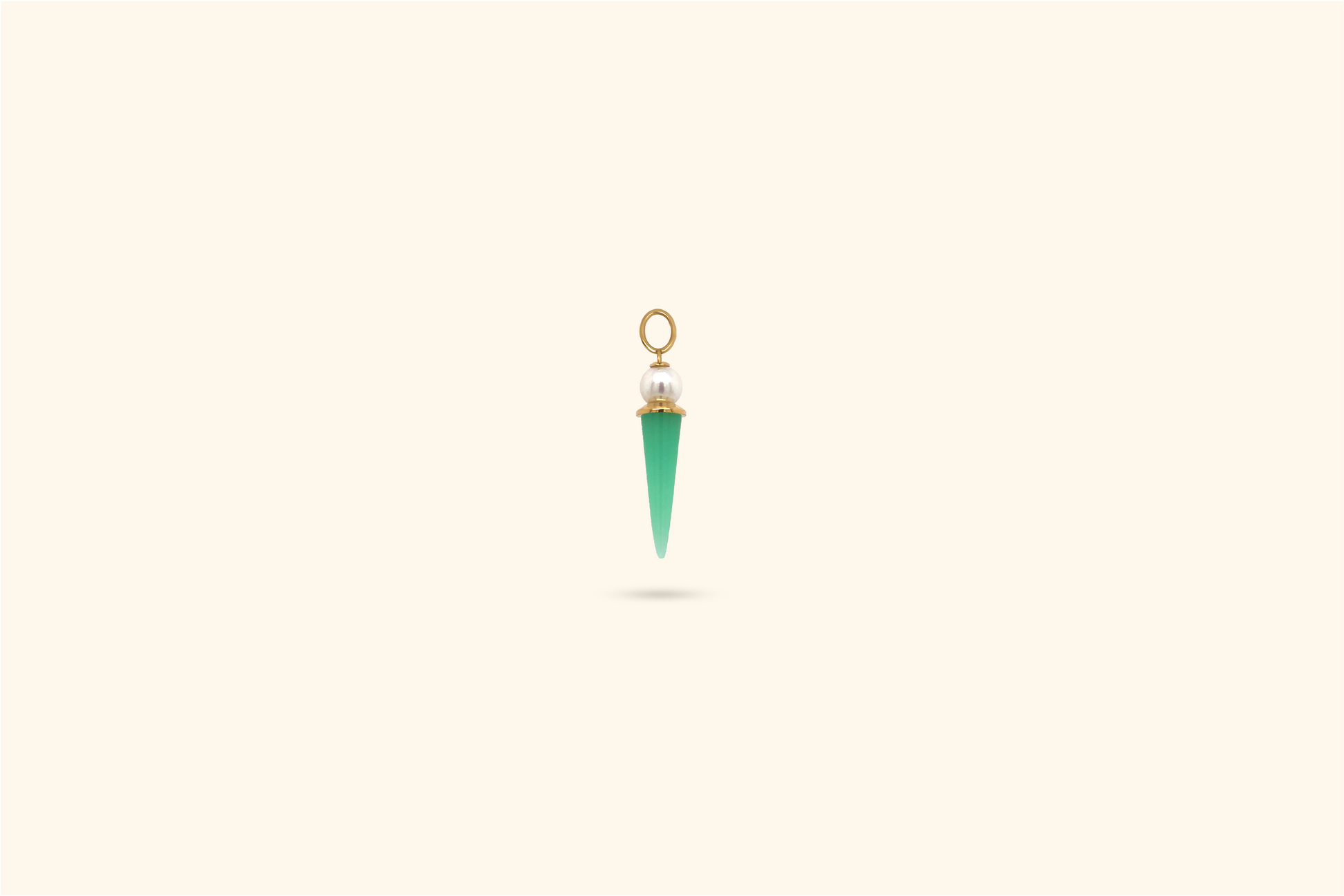 Pendentif Mini Pampille, or jaune 18k, chrysoprase surmontée d'une perle.