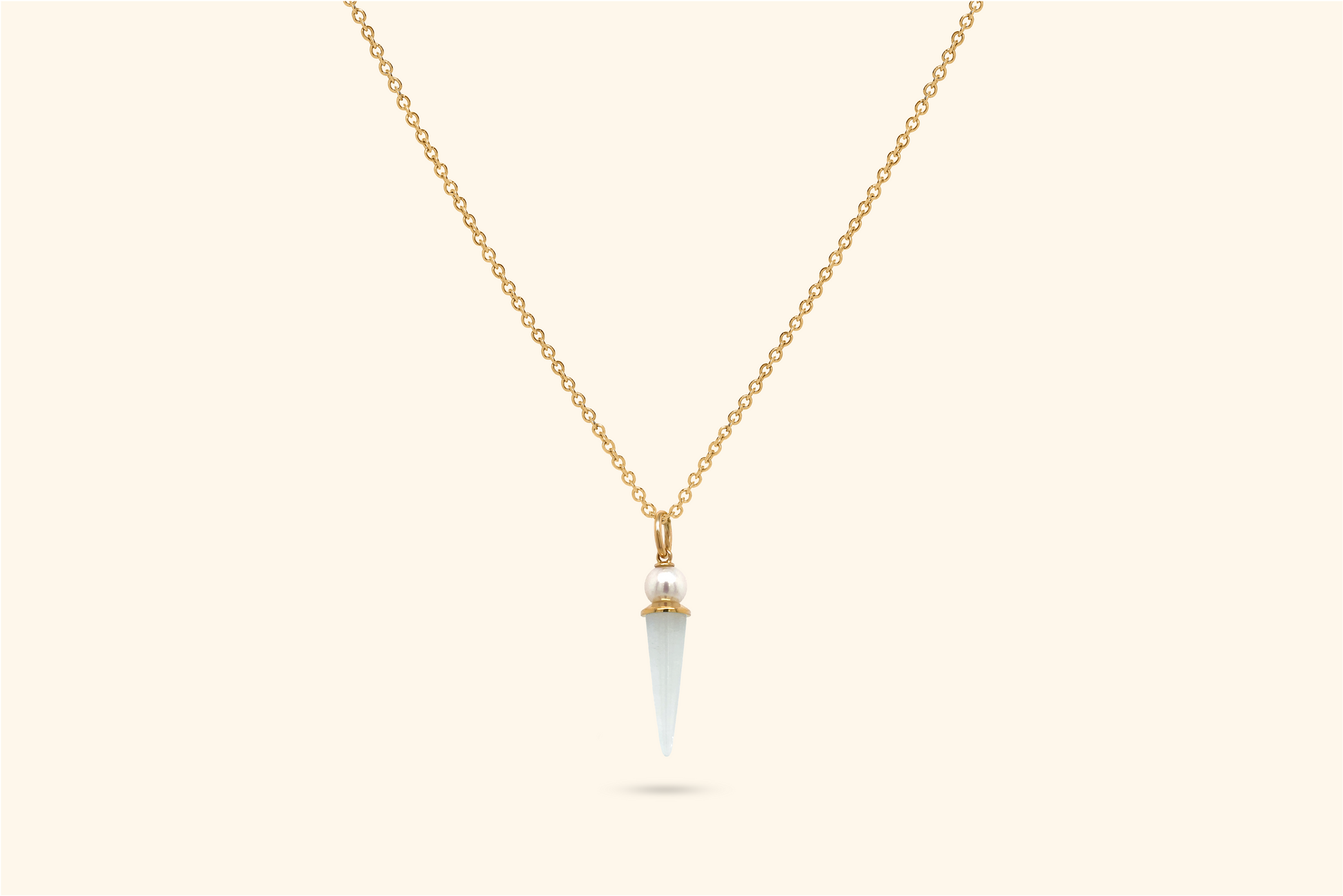 Pendentif Mini Pampille, or jaune, perle, pierre de lune