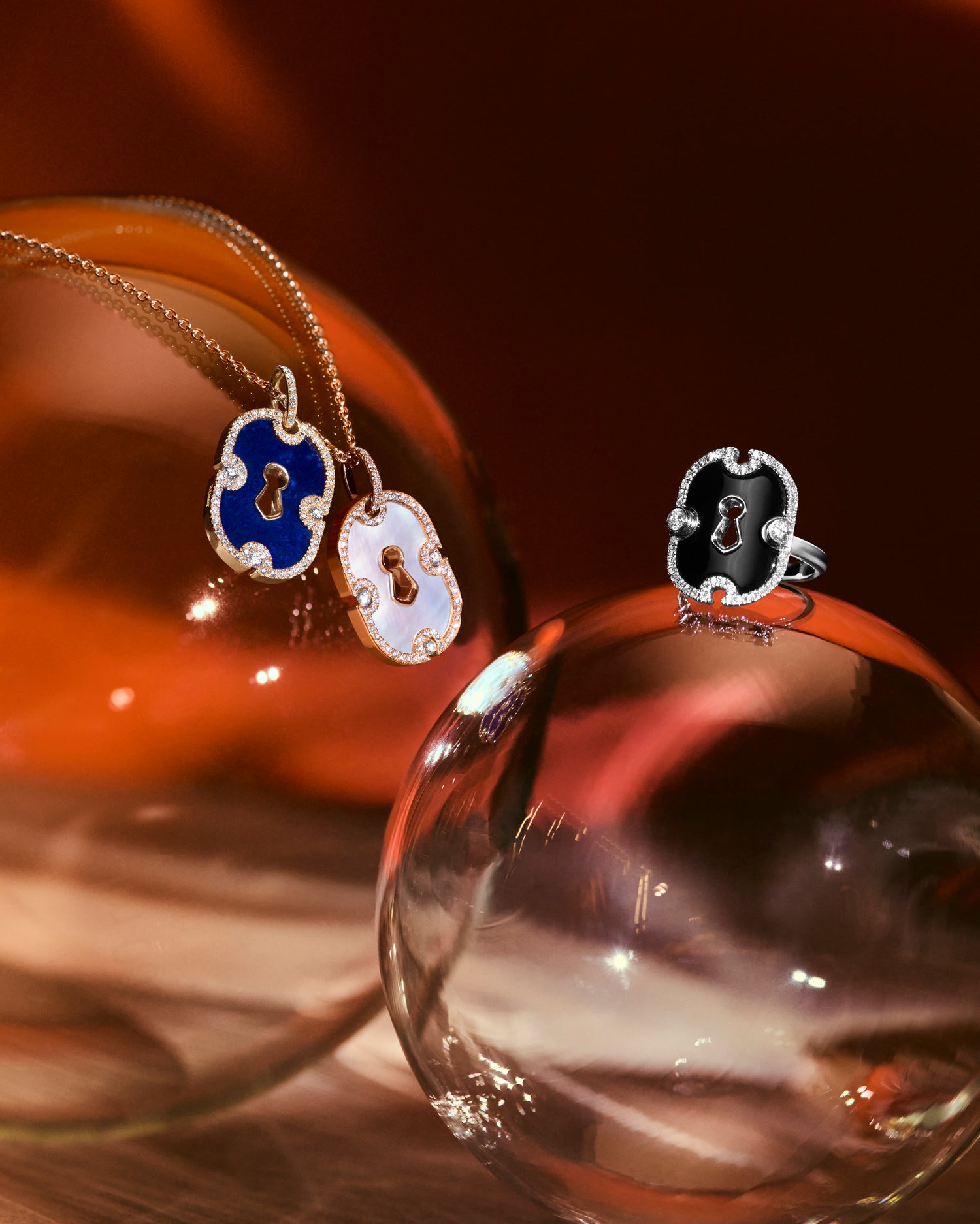 Pendentif Unlock pavé, or rose, nacre blanche, diamants