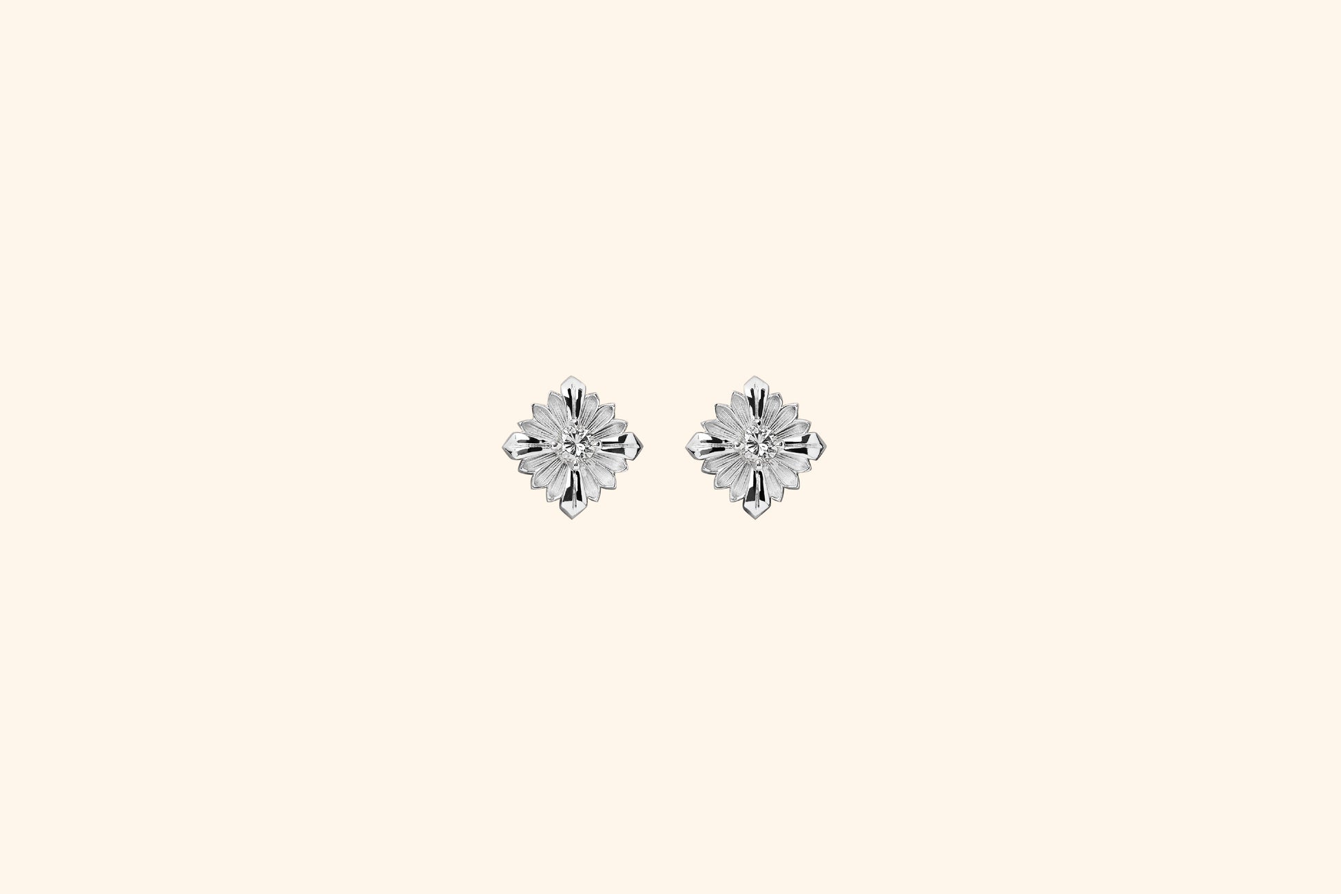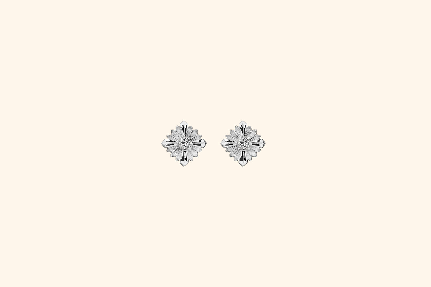 Puces d'oreilles Stamp, or blanc 18k, serties de deux diamants pour ~0,14 carat.