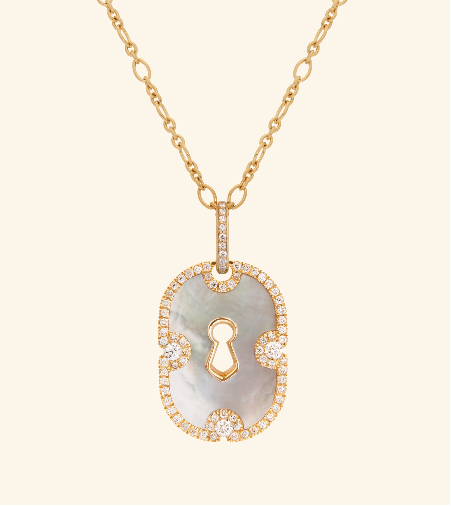 Sautoir Unlock pavé grand modèle, or jaune, nacre blanche, diamants