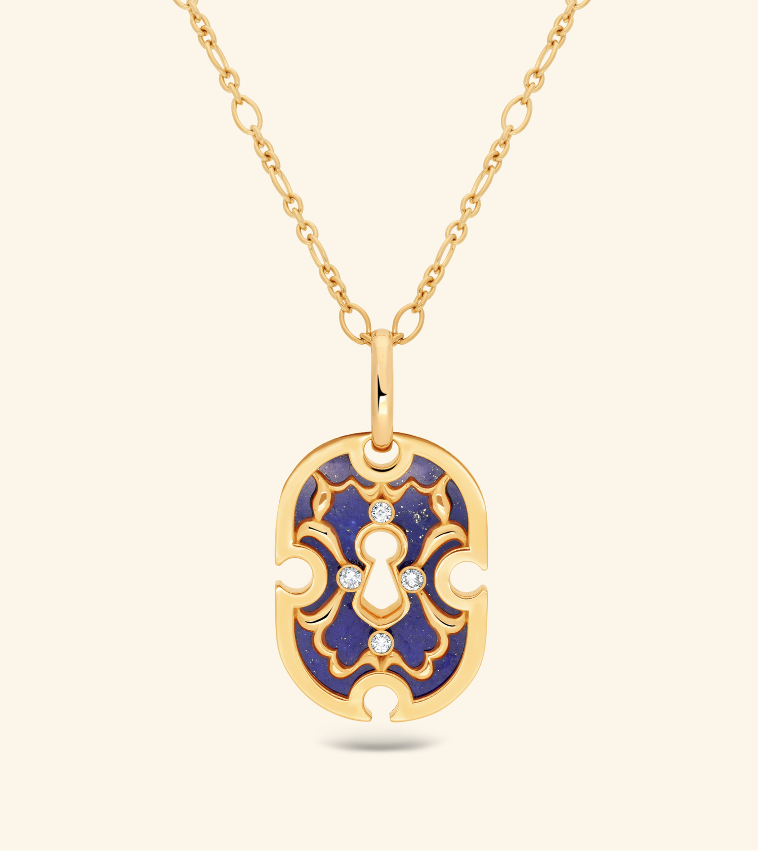 Sautoir Unlock grand modèle, or jaune 18k et lapis lazuli, serti de 4 diamants pour ~0,4 carat.